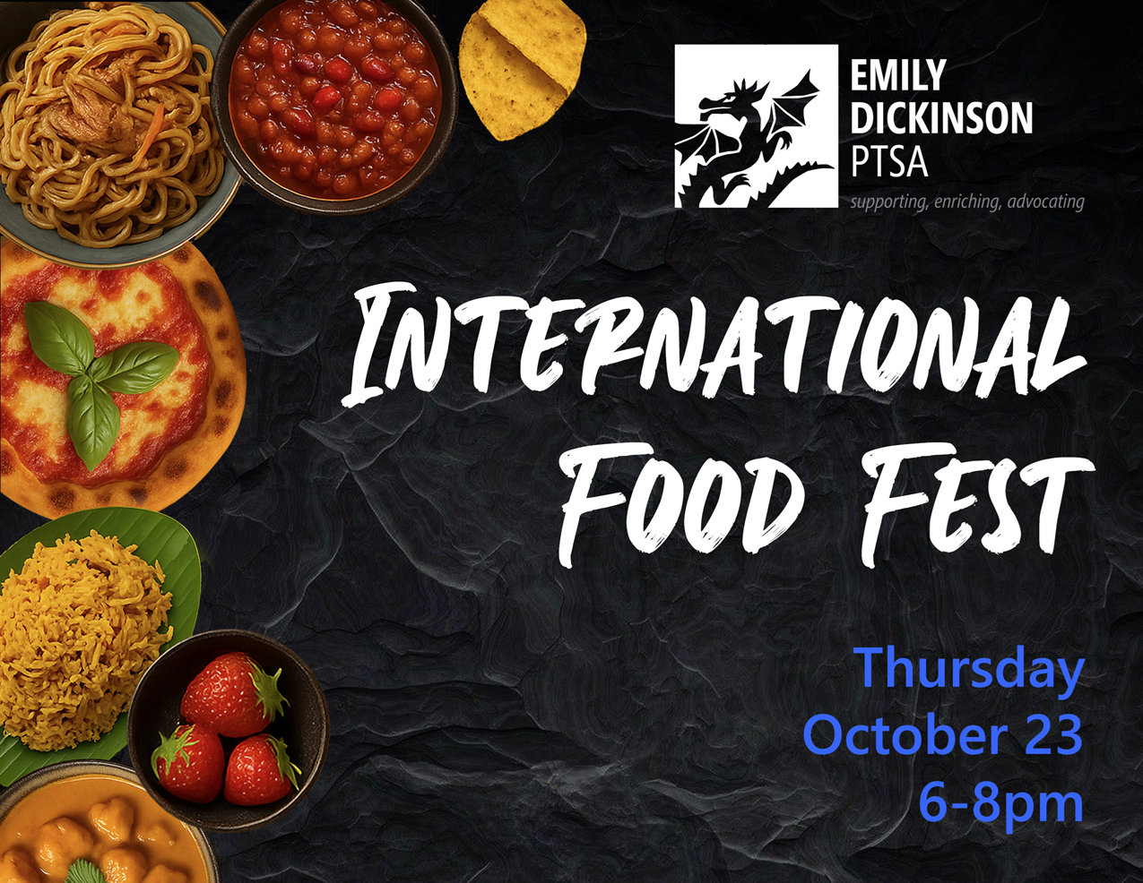 Sign up HERE by 10/17 to share bite-size samples, host a table display, wear traditional clothing, and/or provide music. This BIG family-favorite PTSA event is on 10/23! Set up, clean up, and prize table volunteers also needed HERE!
